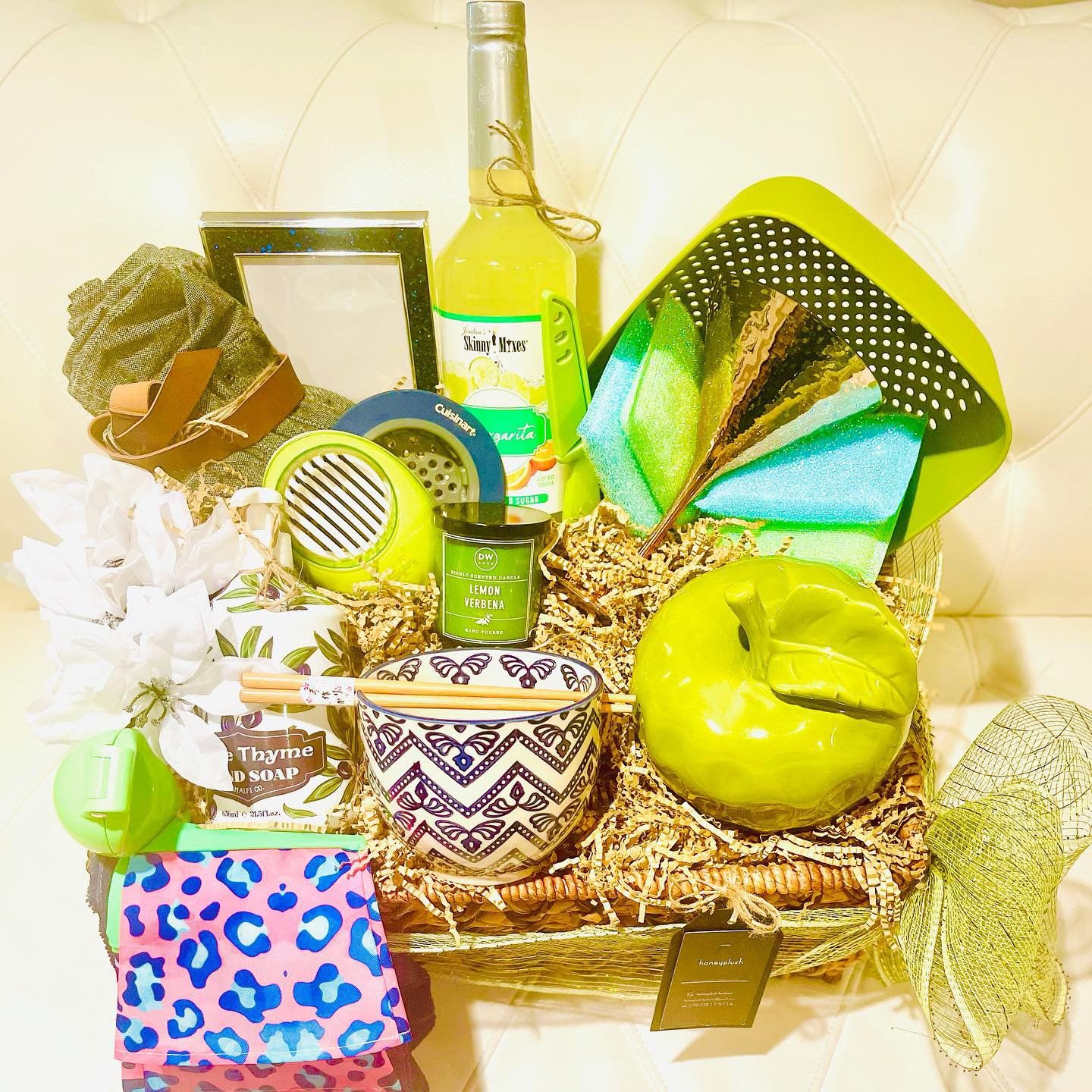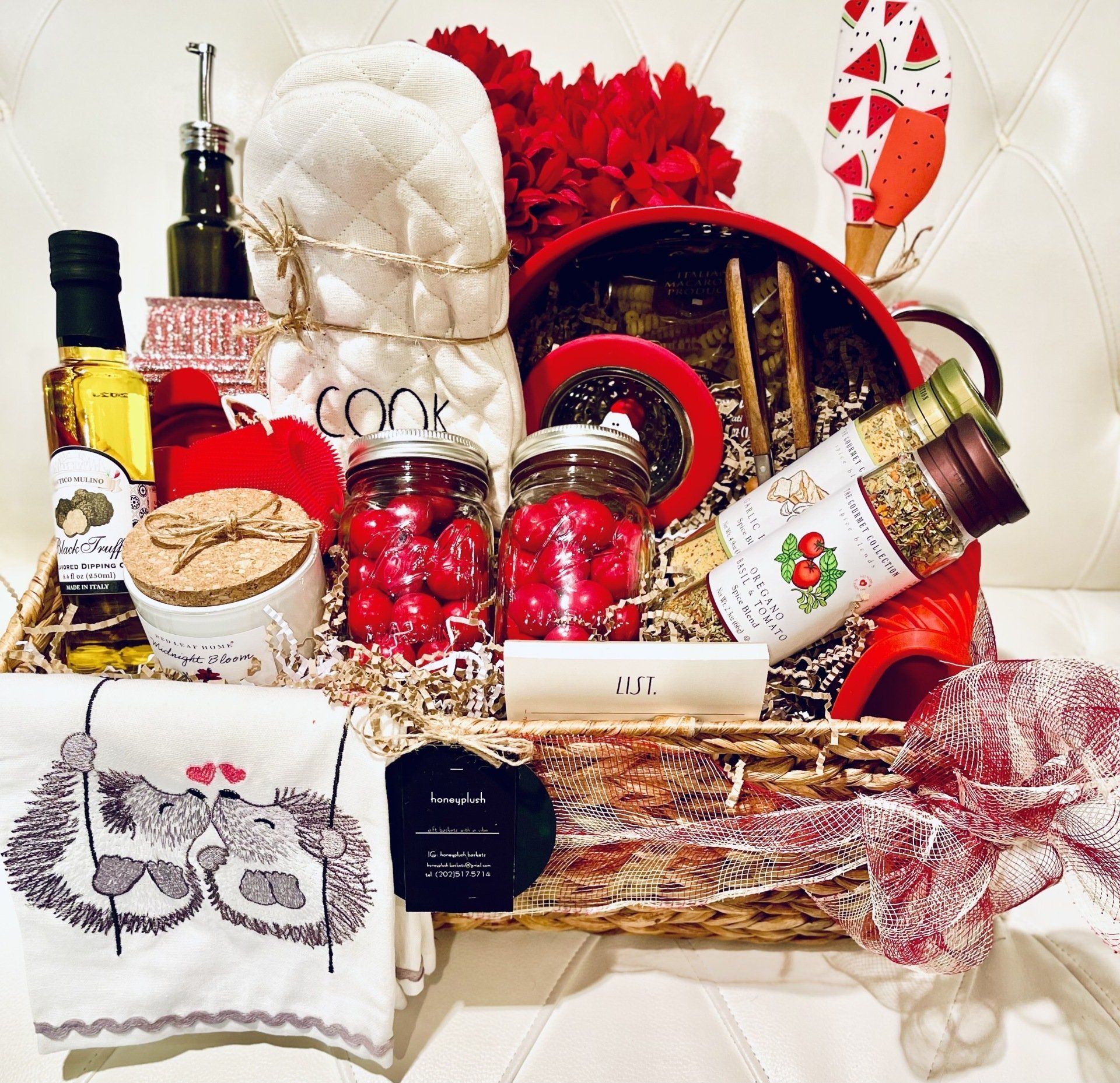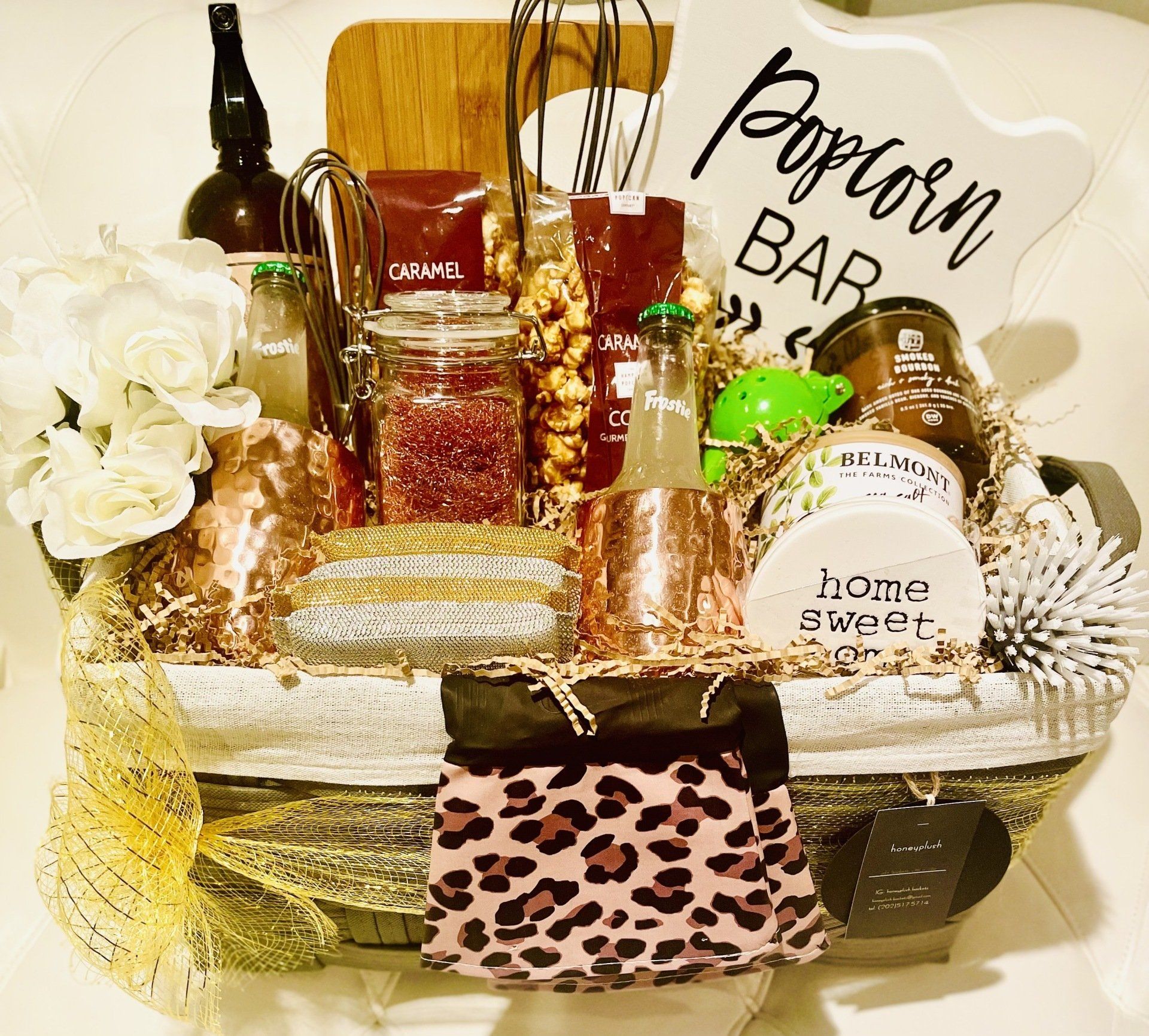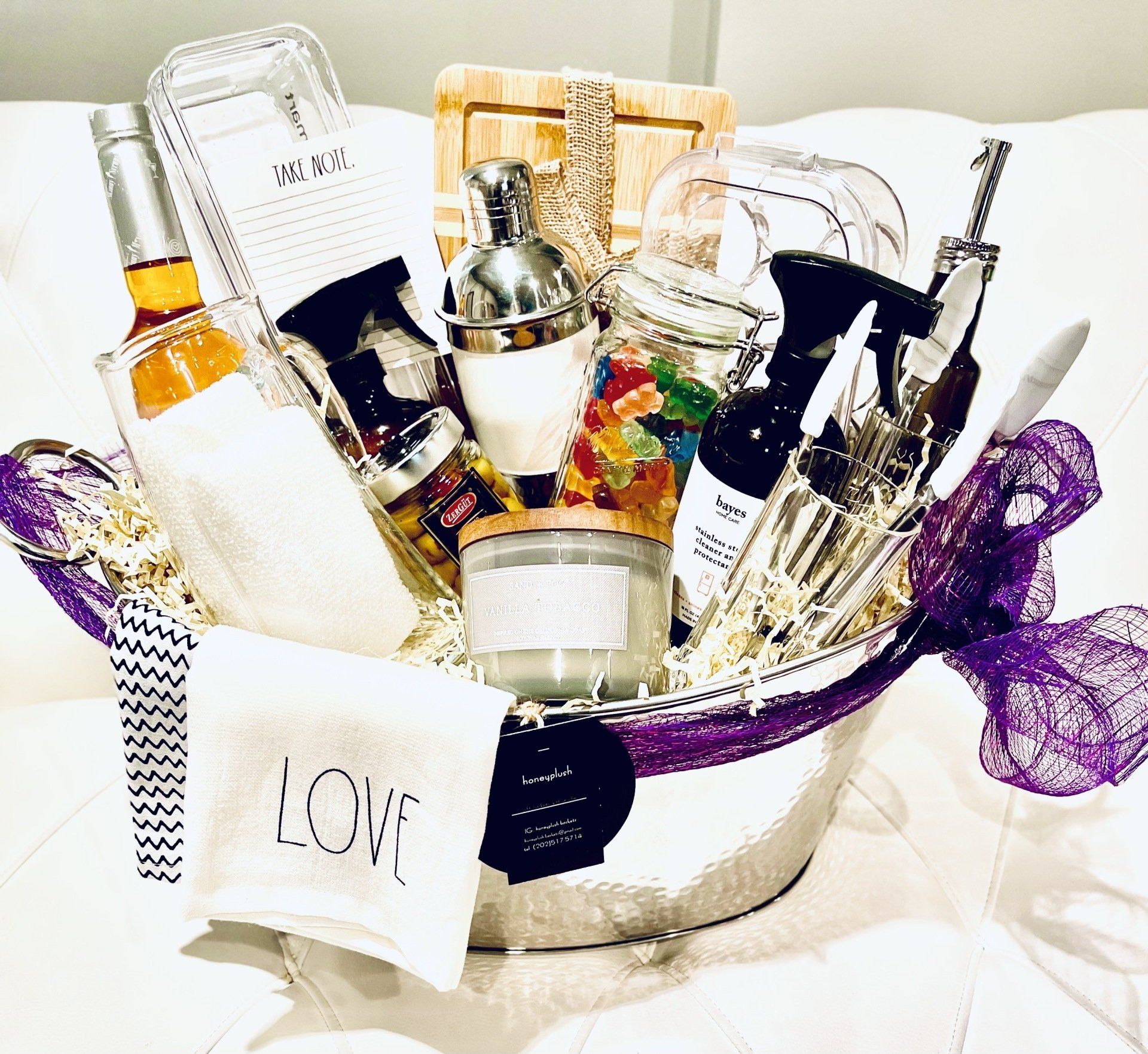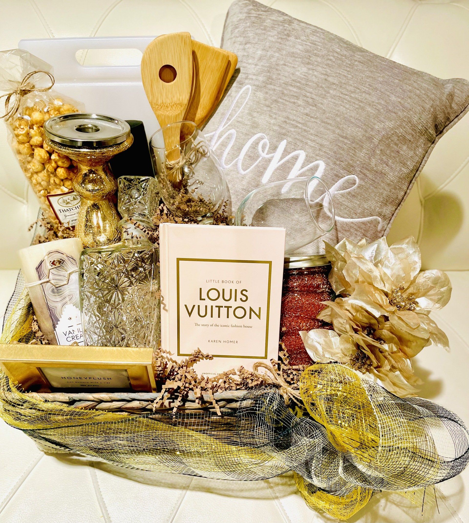 Add your own luxe item (your cost): (ex: Ring Alarm, Nest Thermostat, Luxe Perfume, Premium Champagne, what ever your VIBE is, I can add to My Design! Hand-made and filled with *3 additional luxe products from Honeyplush, creativity and style. This is not your average gift basket.* I have you covered for All Occasions: Holiday, Realtor Gift, Graduation, College Gift, Bridal Gift, Birthday Gift, Host Gift, Teacher Gift, House Warming Gift, Nurse Gift, Divorce Party Gift, White Elephant (Christmas party) Gift, Just because Gift...